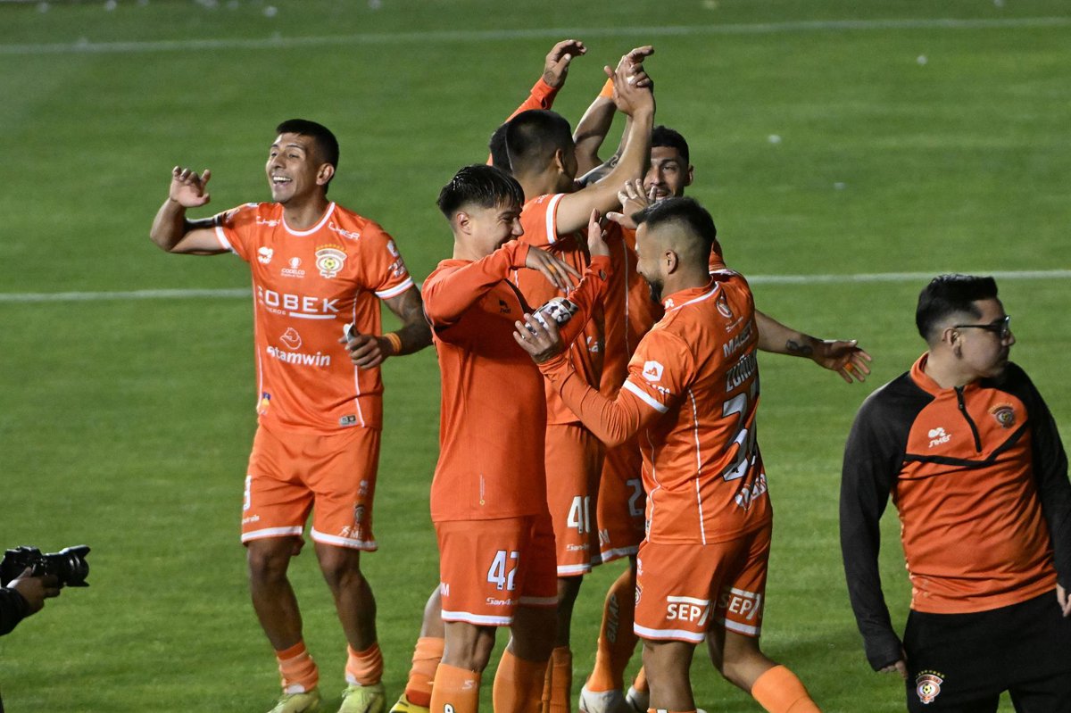 Futbol, Cobreloa vs San Marcos de Arica Liguilla de asceso 2025. Los jugadores de Cobreloa, celebran tras ganar el partido ante San Marcos de Arica por partido Liguilla Ascenso Caixun realizado en el estadio Zorro del Desierto Calama, - PEDRO TAPIA/PHOTOSPORT
