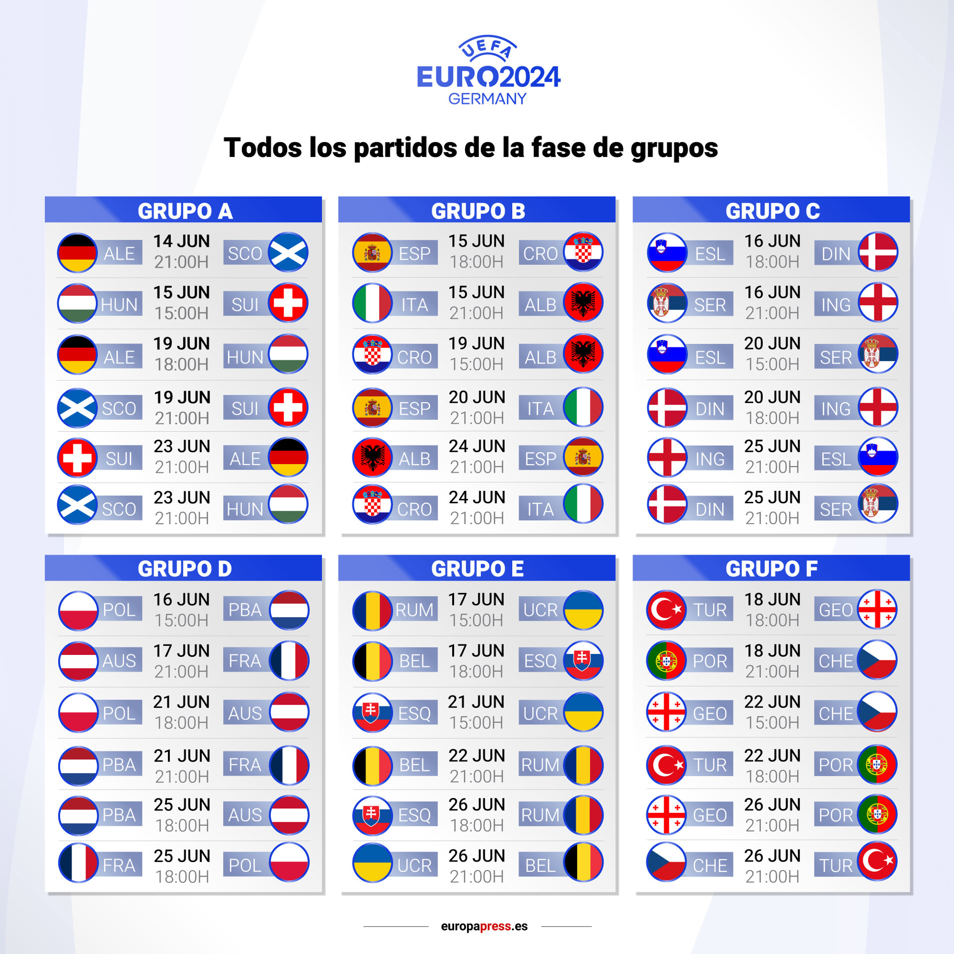 Infografía que recoge las fechas de todos los partidos de la fase de grupos de la Eurocopa 2024. - Europa Press