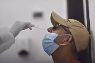 Archivo - Una persona se somete  a una prueba PCR de coronavirus en un centro médiico de Río de Janeiro.