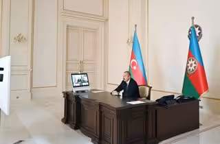 El presidente de Azerbaiyán, Ilham Aliyev, en un discurso desde el despacho presidencial