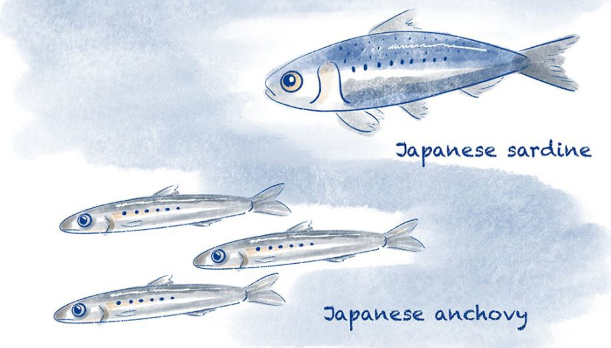 La anchoa japonesa y la sardina japonesa constituyen una gran proporción de la importante población pesquera de la zona