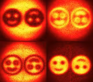 Mientras tanto, su compañero entrelazado golpea un modulador de luz espacial, el equivalente al haz de referencia. Los moduladores de luz espacial son dispositivos ópticos que pueden reducir fraccionalmente la velocidad de la luz que pasa a través de ellos. Una vez que los fotones pasan a través del modulador, tienen una fase diferente en comparación con sus compañeros entrelazados que han sondeado el objeto objetivo.